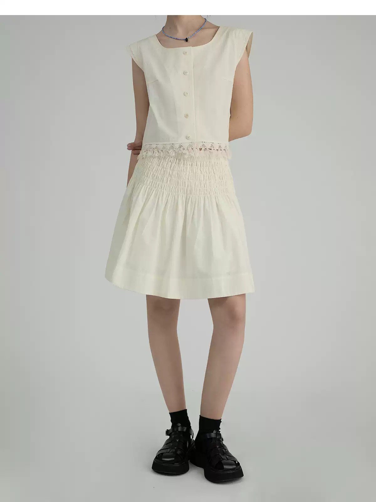 This vintage smocked A-line flare mini skirt combines French elegance with a sweet retro vibe, making it a must-have for a chic and feminine look. Designed with a high-waisted fit, it accentuates the waist while elongating the legs for a flattering silhouette. The delicate smocked detailing adds texture and depth, enhancing the overall sophisticated aesthetic. The A-line flare design creates a flowy and graceful movement, offering both comfort and a touch of playful charm. Made from lightweight, breathable fabric, this skirt is perfect for warm-weather outings. Pair it with a blouse, T-shirt, or tank top to achieve a stylish vintage-inspired ensemble—ideal for dates, shopping, or vacations.
